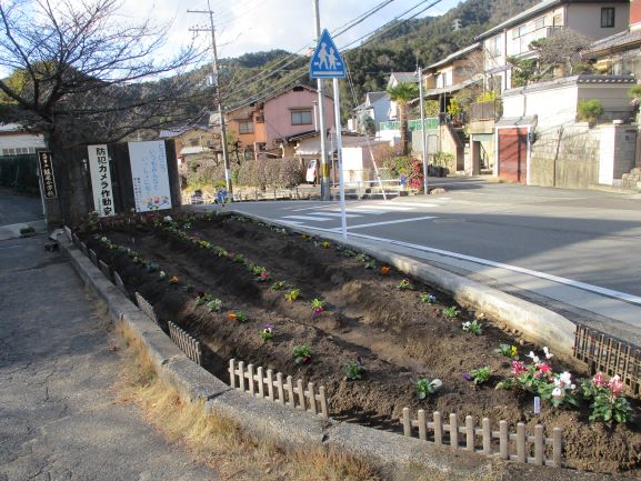 明日の始業式を前にFFB〔フジオ フラワー ボランティア)の皆さんが結集され、皆さんの力で校門前の花壇を見事に花いっぱいにしていただきました。暖かくなるとチューリップが咲き誇る予定です。明日朝の子どもたちの反応が楽しみです。