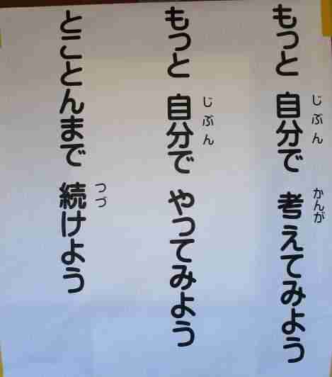 2つ目は、「ちょっと自分で考えよう」「ちょっと自分でやってみよう」「あきらめず、続けよう」の振り返り。