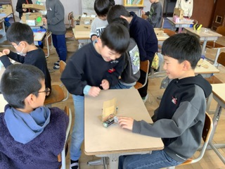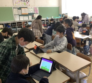 4年生になって初めて体験したスクラッチを3年生に鑑賞や体験してもらいました。3年生は驚き、「来年は僕たち、私たちも作るぞ」と目を輝かせていました。