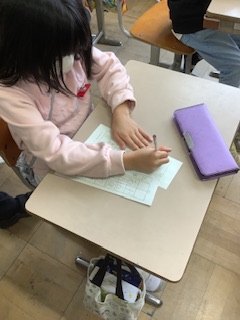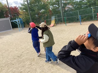 外に出て、国語科「ちいちゃんのかげおくり」の影写をしたり、遮光プレートを使って太陽を見たりしました。また、影つなぎをしたり、理科ノートに載っているかげ絵を作って遊びました。