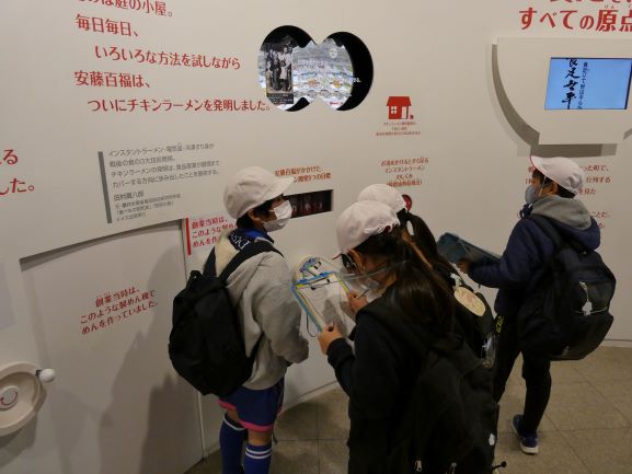 校外学習で「カップヌードルミュージアム」へ行ってきました。ミュージアム見学やチキンラーメン・カップヌードル作りを通して、発明・創造のおもしろさや難しさ、日本が誇る食品工業について知ることができました。