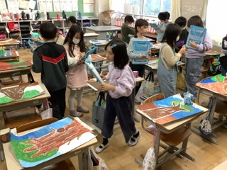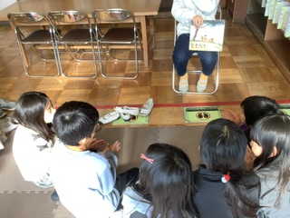 長休みに図書委員会の5年生が図書室で読み聞かせをしてくれました。「友だちのことについて知ることができた。」「楽しかった。」と聞いた3年生からありました。