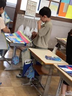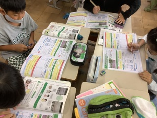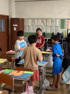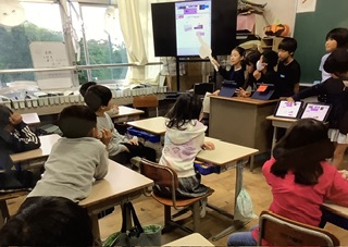 4年生が1学期に参加したり、学習したりしたことを来年、参加する3年生に発表しました。来年、3年生が少しでも不安が少なくなるようにわかりやすくまとめていました。