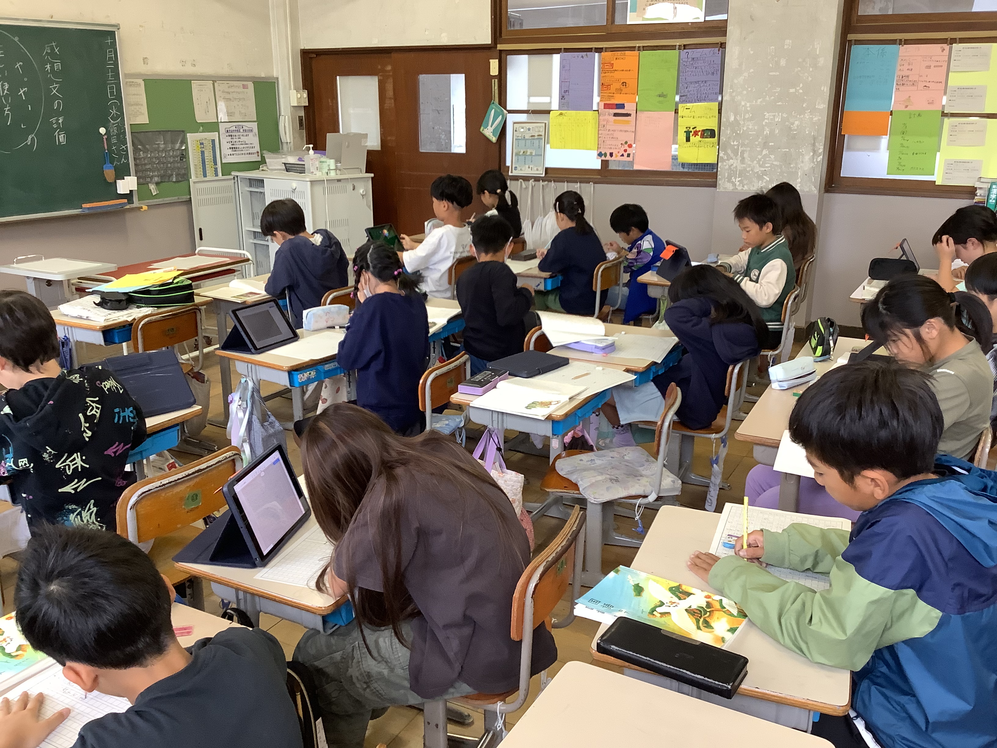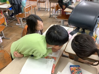 友だちの作品の良いところを探したり、詳しく聞いたりしました。同じお話から絵を描いていても、お気に入りの場面は違うんだな。表現の仕方もみんな違ってみんないいな。などほんわかした時間となりました。。