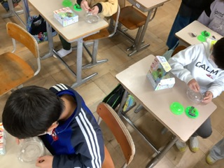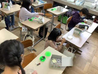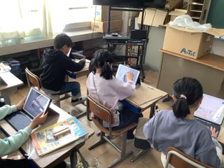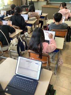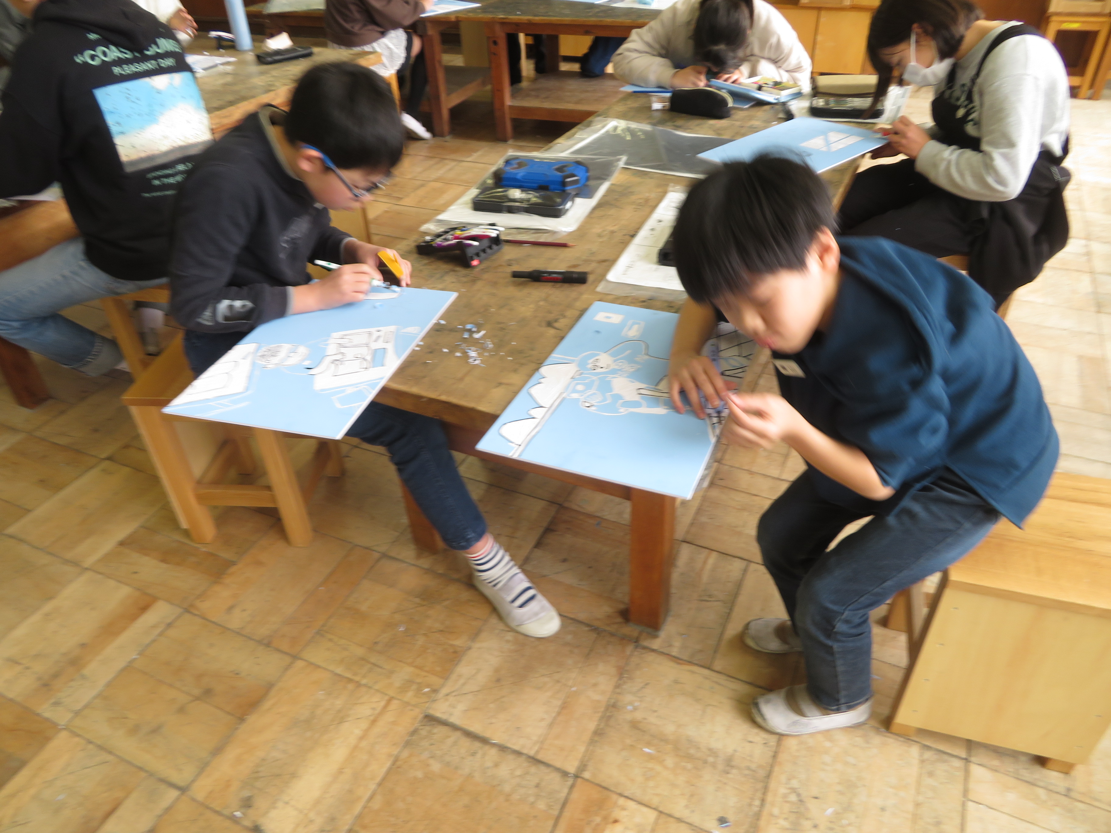 5年生は、ステンシル版画を作成しました。カッターで切り抜き、絵具で色をつけていく作業をしていました。6年生を送る会の準備が始まっています。6年生に感謝を伝えるために作業を進めています。