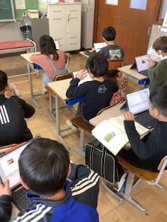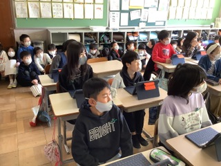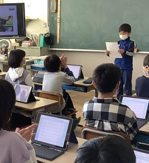 3年生が調べて発表練習をした成果を4年生の前で発揮しました。声の大きさや話すスピード、資料や顔を見るなどの発表の仕方を意識しました。