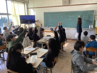 小学校の外国語とは少し違う授業に盛り上がり、中学校の様子を少し実感することができました。