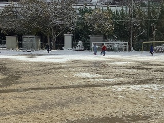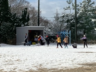 グランドで雪合戦や雪だるまなどを作りました。