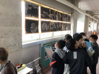 各学年の版画を鑑賞しています。