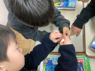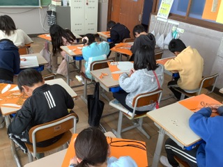 早く終わった子は6年生のおめでとうメッセージに入ってもらいます。