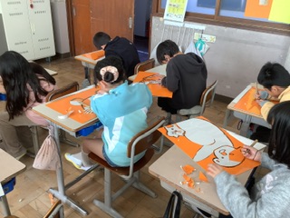 表情や体の動きなどに注目しながら、丁寧にした絵を描きました。