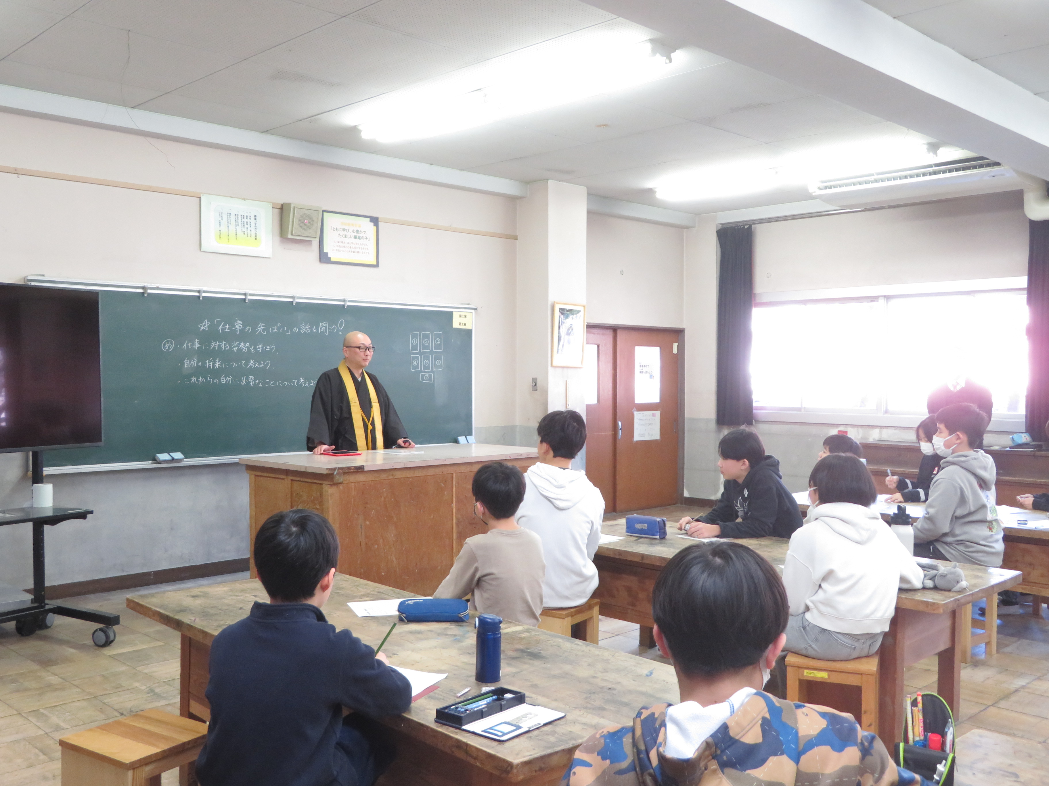 「仕事の先輩」として、3名の保護者の方からお話を聞かせていただきました。お一人ずつ今の職につかれたきっかけや、仕事の楽しさ、厳しさ、今の6年生たちに大切にしてほしいこと等、貴重なお話をしていただきました。貴重な時間を、ありがとうございました。
