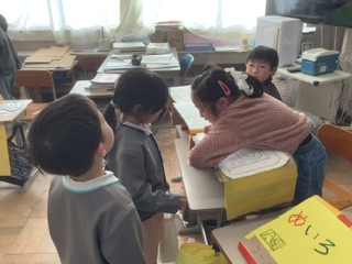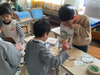 2年生は、看板や説明などをしっかりと作成して、本番を迎えました。5歳児さんが上手にできると、「すごいね」や「やったね」など優しい声掛けがたくさんできました!さすが2年生ですね。