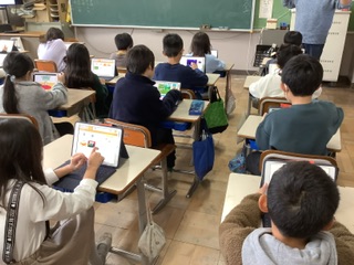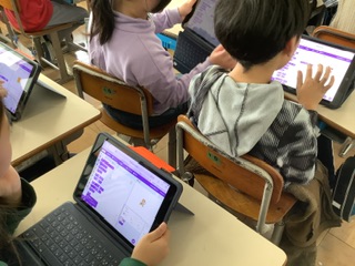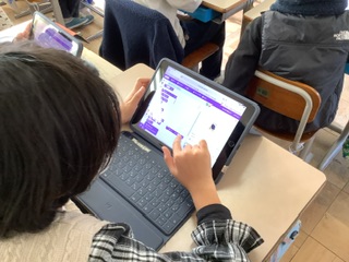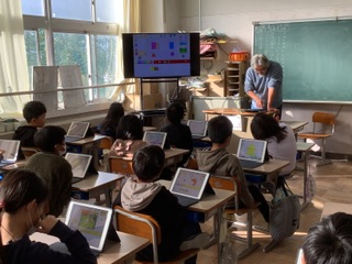 中川先生の2学期の授業は最終日になります。冬休みに取り組めるようにscratch Jr.の色々な方法と試すことの大切さを教えていただきました。