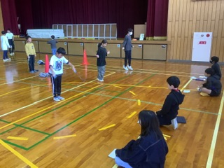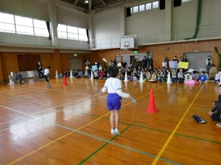 生活委員会による「9月の体育の宿題検定」が、体育館で行われました。久しぶりのフジオリンピックでしたが、低学年から高学年までたくさんの子が参加し、大盛況のイベントになりました。