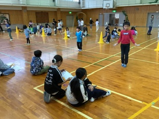 24日(火)と26日(木)の2日間、体育の宿題検定「ペア前跳び」「ペア後ろ跳び」を開催しました。