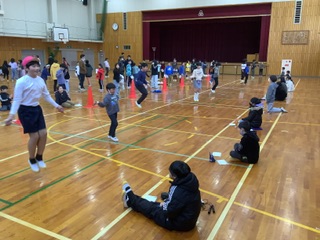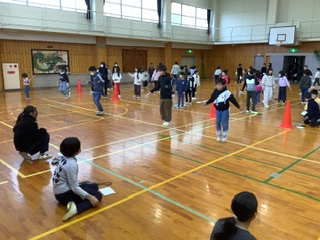1月26日と29日の2日間、体育の宿題検定「1分間後ろとび」が開催されました。1年生から6年生までたくさんの児童が参加し、目標回数をクリアしようと一生懸命頑張りました。