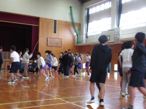 毎月恒例、生活委員会主催の「体育の宿題検定」を昼休みに行いました。今月の種目は「1分間前とび」。