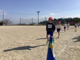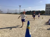 1年生にとっての初めての持久走をしました。1年生は、5分間走り続けます。