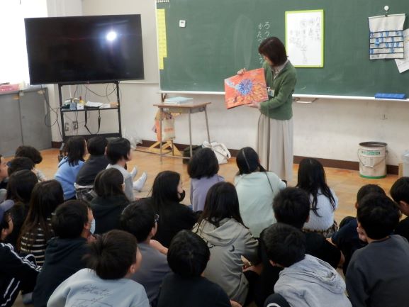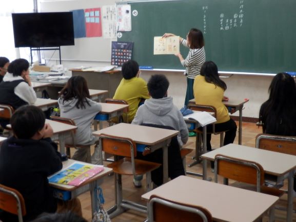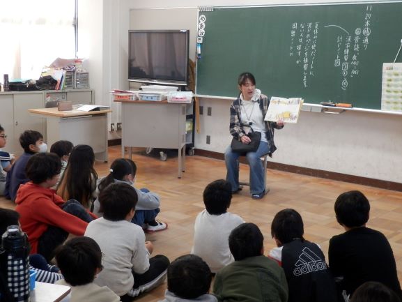 今日は上学年の読み聞かせの日でした。「おむすびころりん」の皆さんが教室に来て、読み聞かせをしてくださいます。