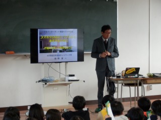 今日は5時間目に6年生と希望された保護者の方を対象に、NIT情報技術推進ネットワーク株式会社から篠原嘉一さんを招いて情報モラル教室を行いました。具体的なアプリ名を挙げて危険性や設定の仕方などを詳しく教えてくださいました。6年生にとって自分の携帯の使い方をふり返る貴重な時間となりました。