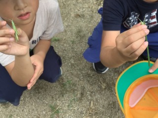 生活科で生き物について学習しており、休み時間にも虫を探しに行く子がいます。運動場のすみに、バッタがたくさんいることに気付きました。