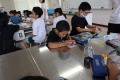 穴にひもを通して、さっそく筆箱やランドセル、連絡袋などに付けている子もいました。