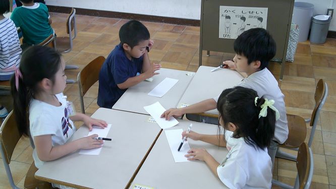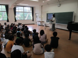 富士見幼稚園の先生が小学校での研修のため、1年3組に来てくれました。卒園した後の子どもがどのように成長するか、小学校の授業ってどうしているのか実地で学ぶものです。先生の勉強ですが、子ども達も幼稚園の優しい先生が来てくれて大喜び!楽しく言葉集めの学習ができました。