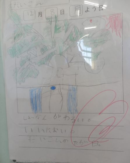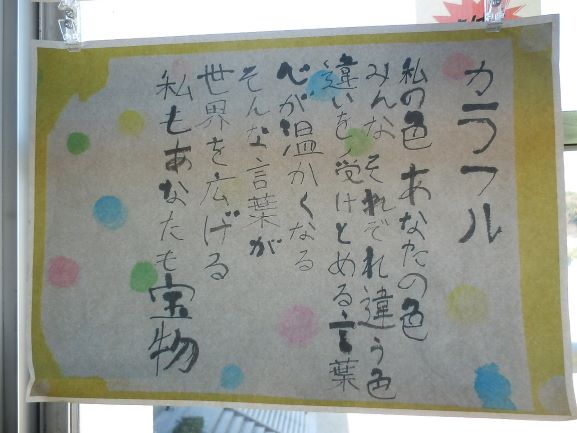 また、懇談の前後で廊下の掲示物にも目をやってください。お芋や大根にまつわるもの、俳句や詩、標語や環境学習の成果など多岐にわたる内容です。