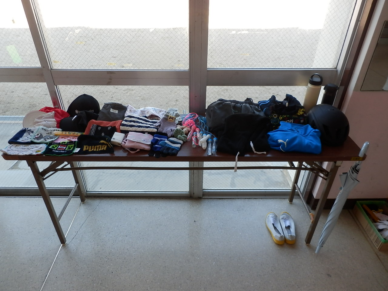 2学期のおとしものを昇降口に置きました。心当たりのある保護者さんは、お子さんのおとしものをお持ち帰りください。