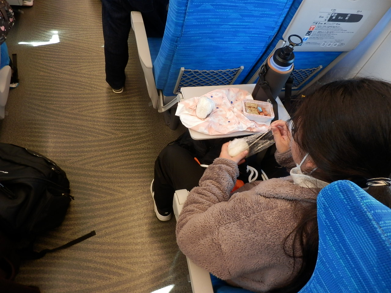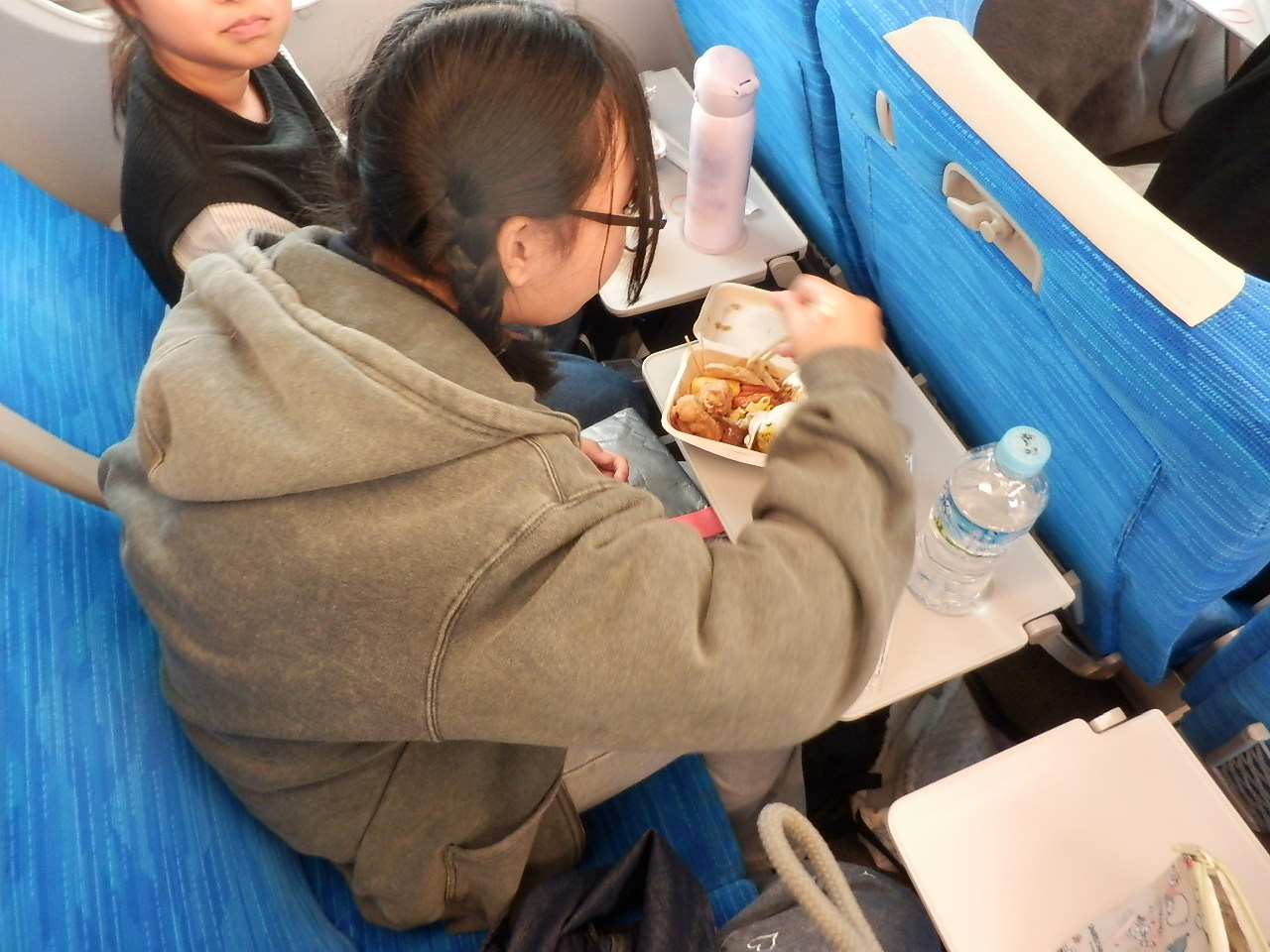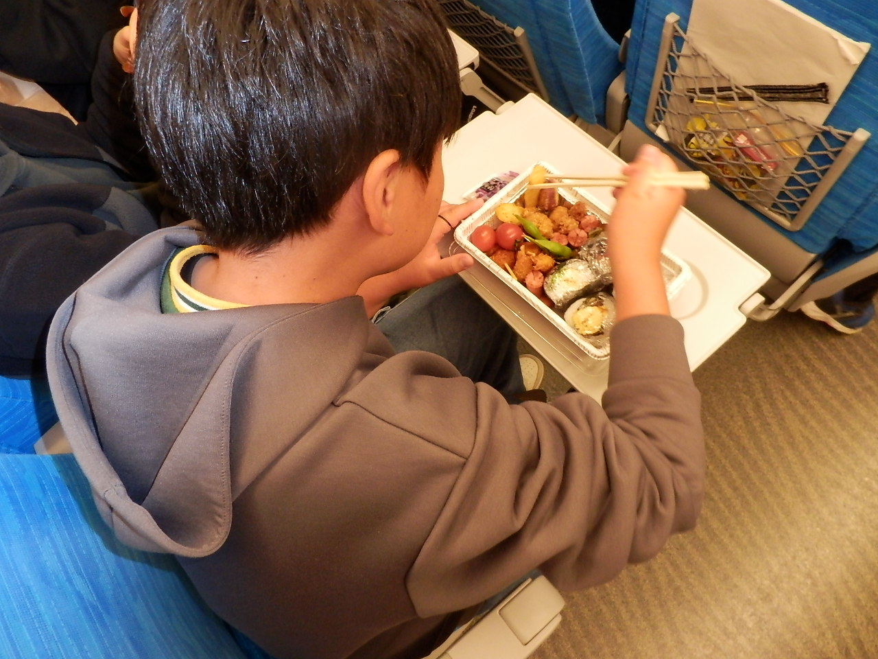 少し早いですが、新幹線の中でお弁当タイムです。みんな待ち遠しくて、うれしそうにお弁当をひろげはじめました。