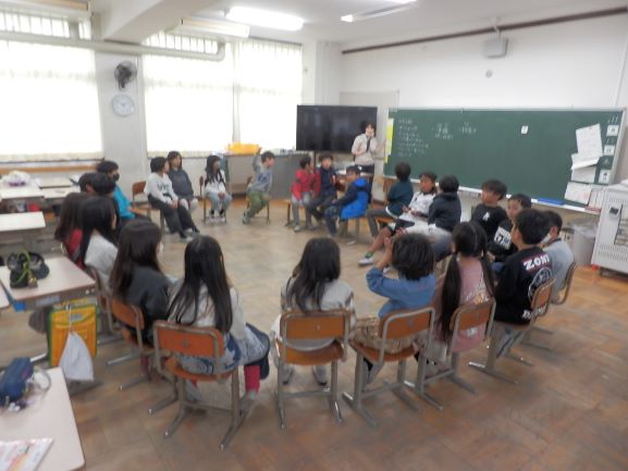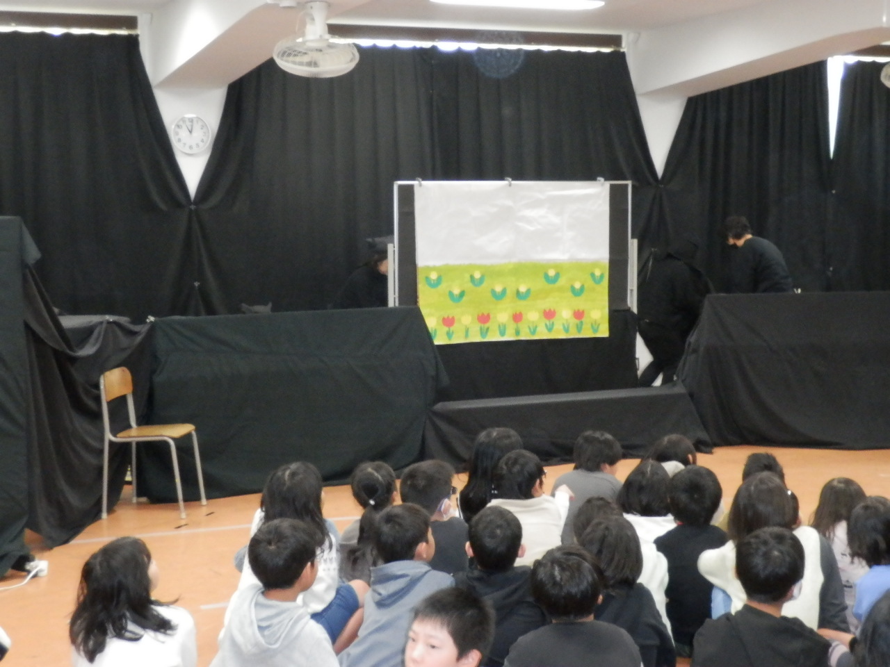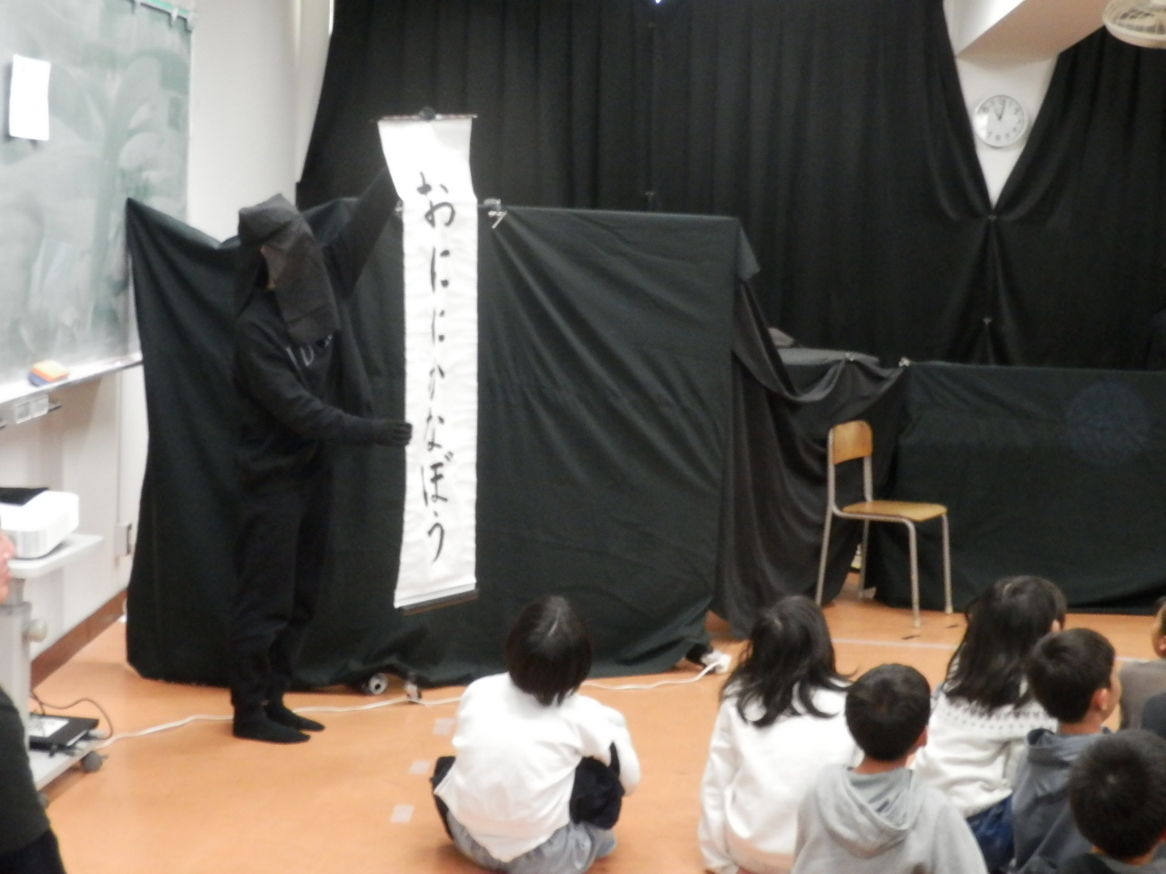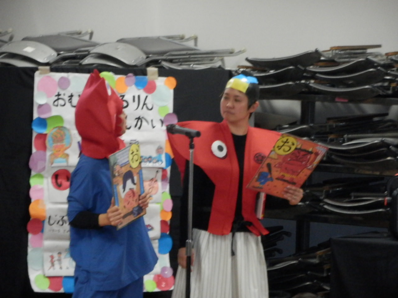 今日は読書サークル「おむすびころりん」の皆さんによるお話会がありました。低中高学年が順番にお話や劇を聞かせて(見せて)いただきました。前日から準備していただき、かなり本格的なもので、子どもたちも前のめりに聞かせていただいていました。