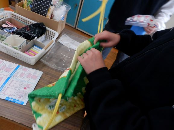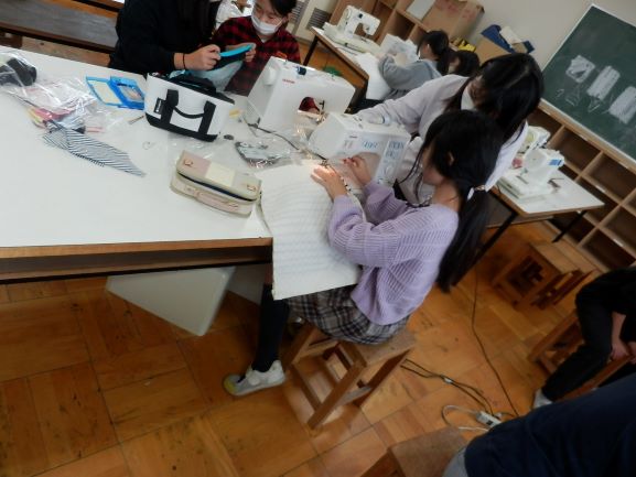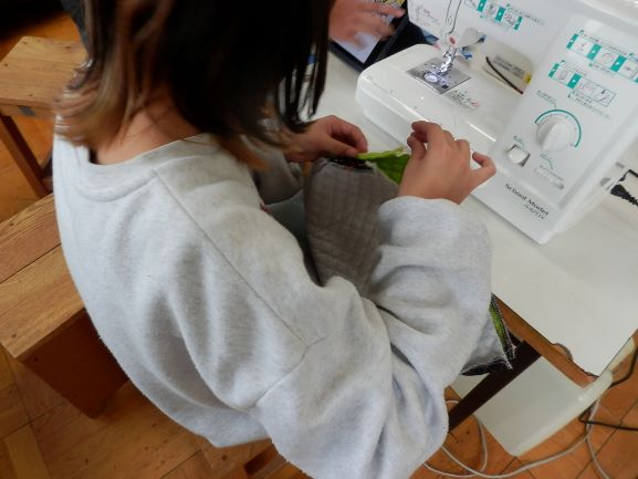 被服室では、6年生がミシンを使ってナップザックを制作していました。いよいよ来週に迫った修学旅行。手荷物を入れるのに完成が間に合うでしょうか…