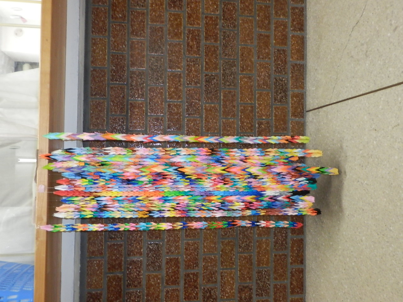 事務室の前で千羽鶴を見つけました。6年生の有志で作っているようです。現在およそ850羽。あと少しです。広島へ平和の願いを届けましょう!※各学級でも取り組んでいるようです。6年生の平和への願いが世界中へ広がりますように…