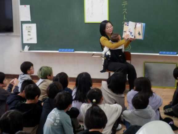 小さい子を連れながらも富士見っ子たちに絵本の楽しさを伝えようとしてくださっています。