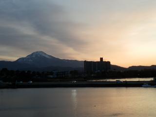 うみのこから伊吹山が見えました。朝焼けがきれいです。