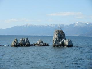 沖の白石の展望です。80m下の湖底からそびえ立つ岩に神秘を感じます。