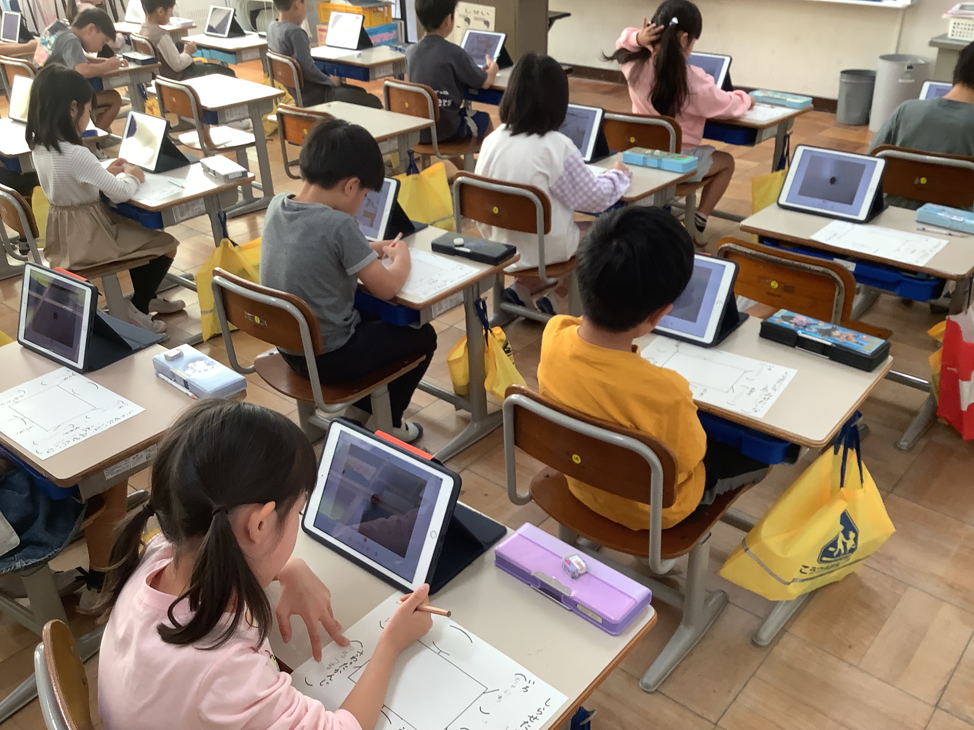 初めてのタブレット学習で、触れることのドキドキを楽しみながら学習に取り組んでいます。