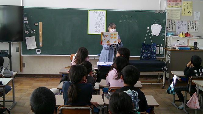 今日は下学年の読み聞かせでした。もうすぐやってくる「ハロウィン」にまつわる絵本など楽しく読んでいただきました。