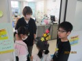 ハロウィンの今日、1時間目にハロウィンパーティーをしました。ハロウィンの絵本を読んでもらい、そのあと、宝探しに。カボチャやこうもりの折り紙を探し当てて大喜び。次は、スタンプラリーをしました。職員室や事務室、校長室の先生方のところまで行き、合言葉を言い、自己紹介をしてプレゼントをもらうというもので、ドキドキしながら楽しんでいました。ハッピーハロウィン!!
