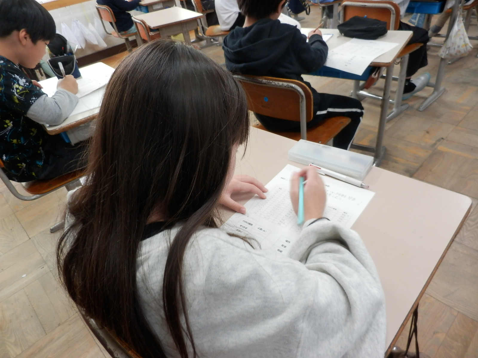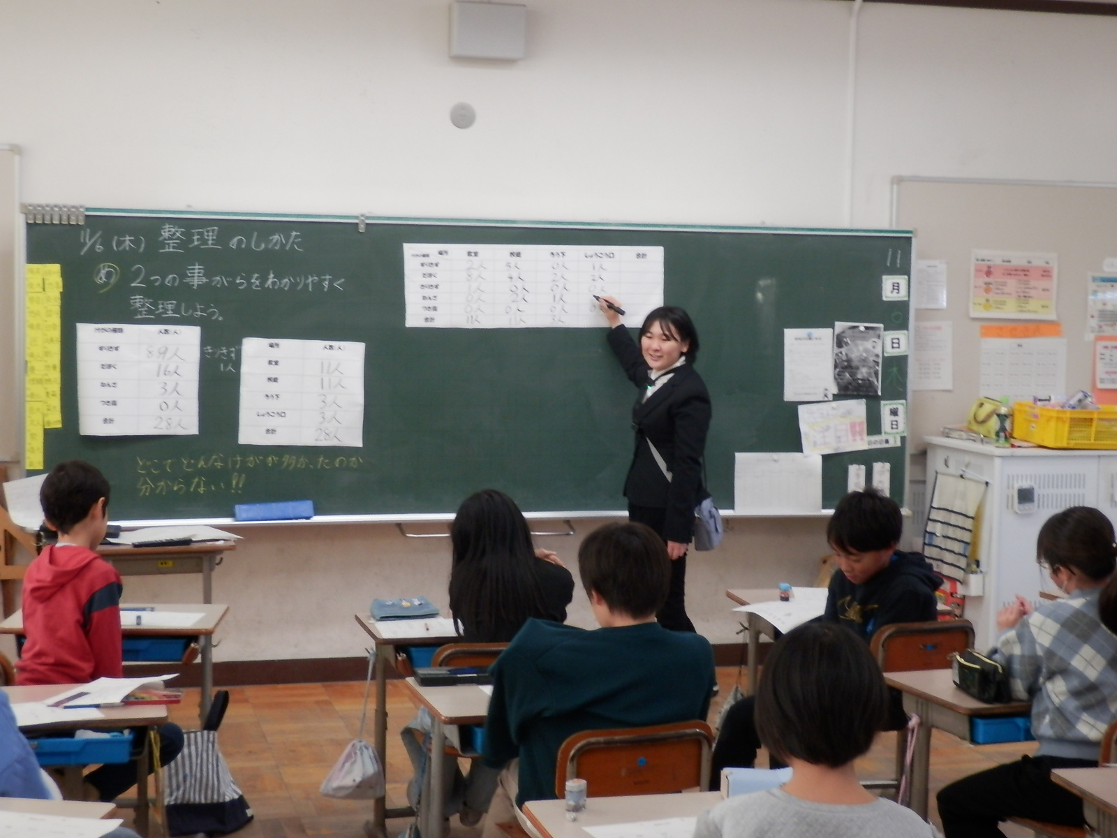 4年生も算数の学習でした。資料をもとに表に整理して見えてくるデータを考察しやすくする学習です。