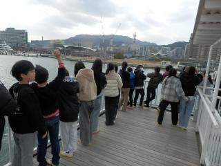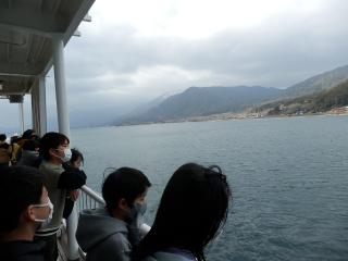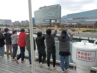 大津港を出港しました。見送りの人たちに手を振りながら長浜へ向かいます。