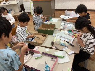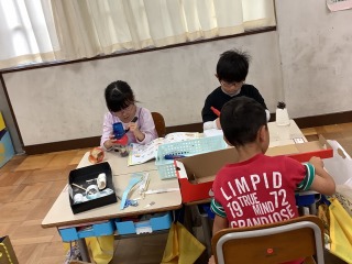 どんぐりや松ぼっくりなどを使って秋のおもちゃ作りをしました。作ってみたいものを考え、作り、次の時間にみんなで遊ぼうと思っています。