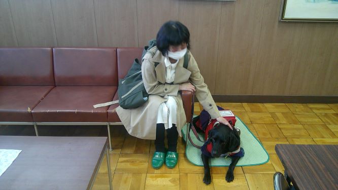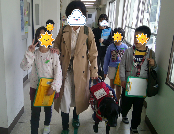 本日、盲導犬ユーザーの方をお招きしてお話をしていただきました。子どもたちも、はじめて見る盲導犬にびっくりしながら、前のめりでお話を聞いていました。