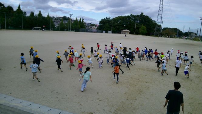 昼休みにスポーツ委員会主催で下学年の『おにごっこ大会』が行われました。委員会の人の説明のあと、一斉に運動場いっぱい逃げ出しました。委員会のお兄さん、お姉さんのおにだけでなく、元気な先生たちも参加し一気におにが増えて逃げる子たちも大変でしたね。