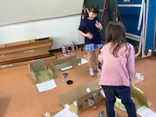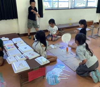 2年生がおもちゃランドに招待してくれました。手作りのおもちゃでたくさん遊び、とても楽しい時間をすごしました。