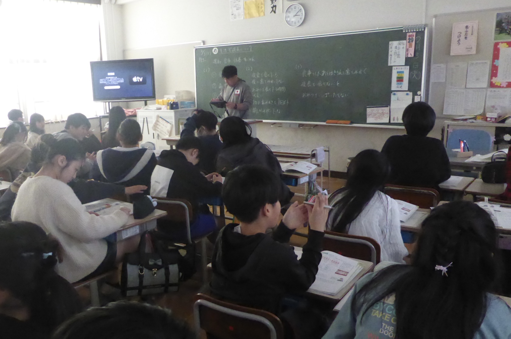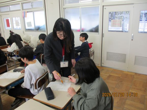 来年度に向けて、昨日は北大路中学校、今日は粟津中学校の先生が6年生の様子を見に来てくださいました。見られている緊張感の中でも、6年生は集中して学習に取り組む姿が見られました。新しい環境に向かって、一歩ずつ準備を進めています。