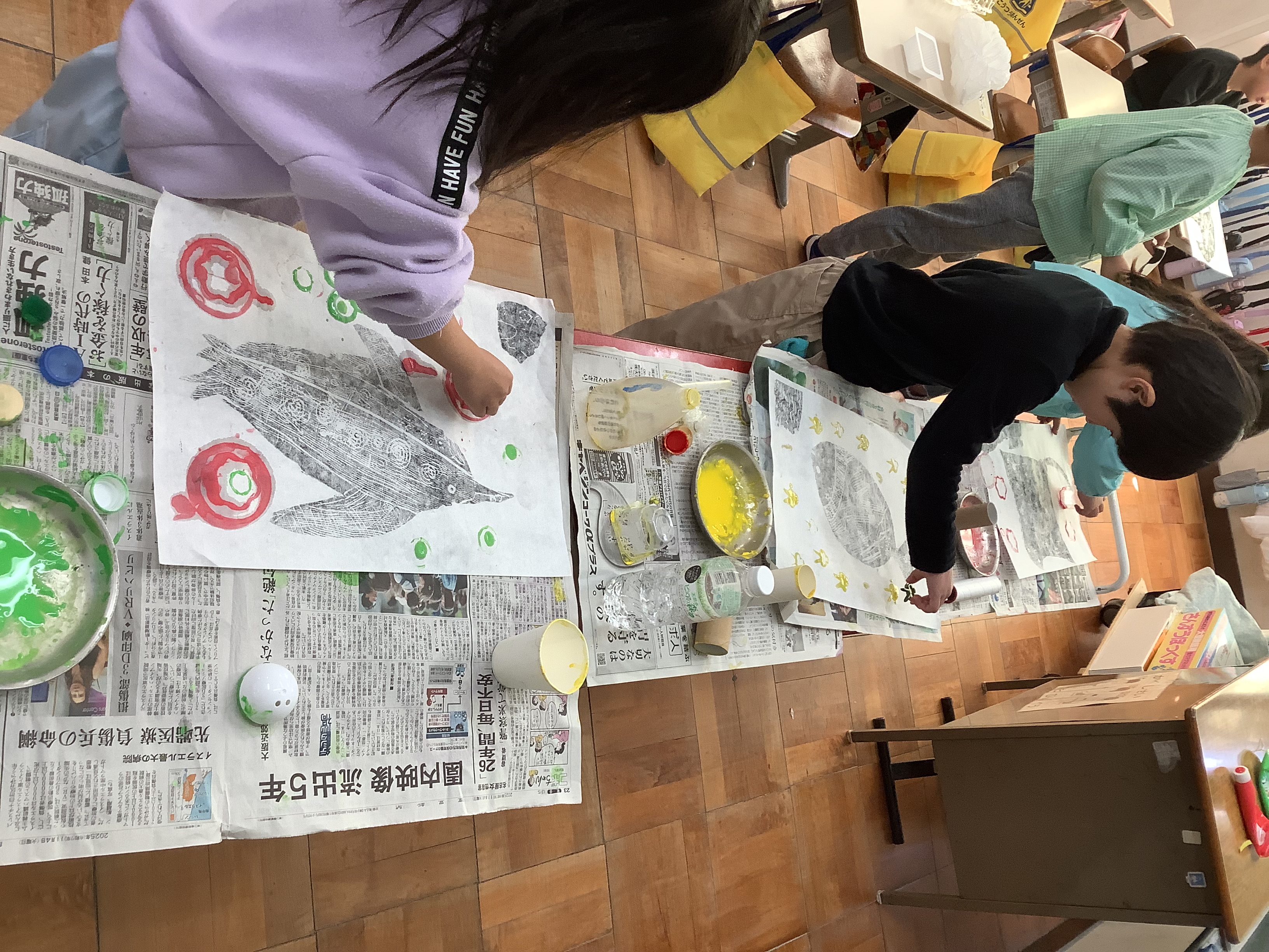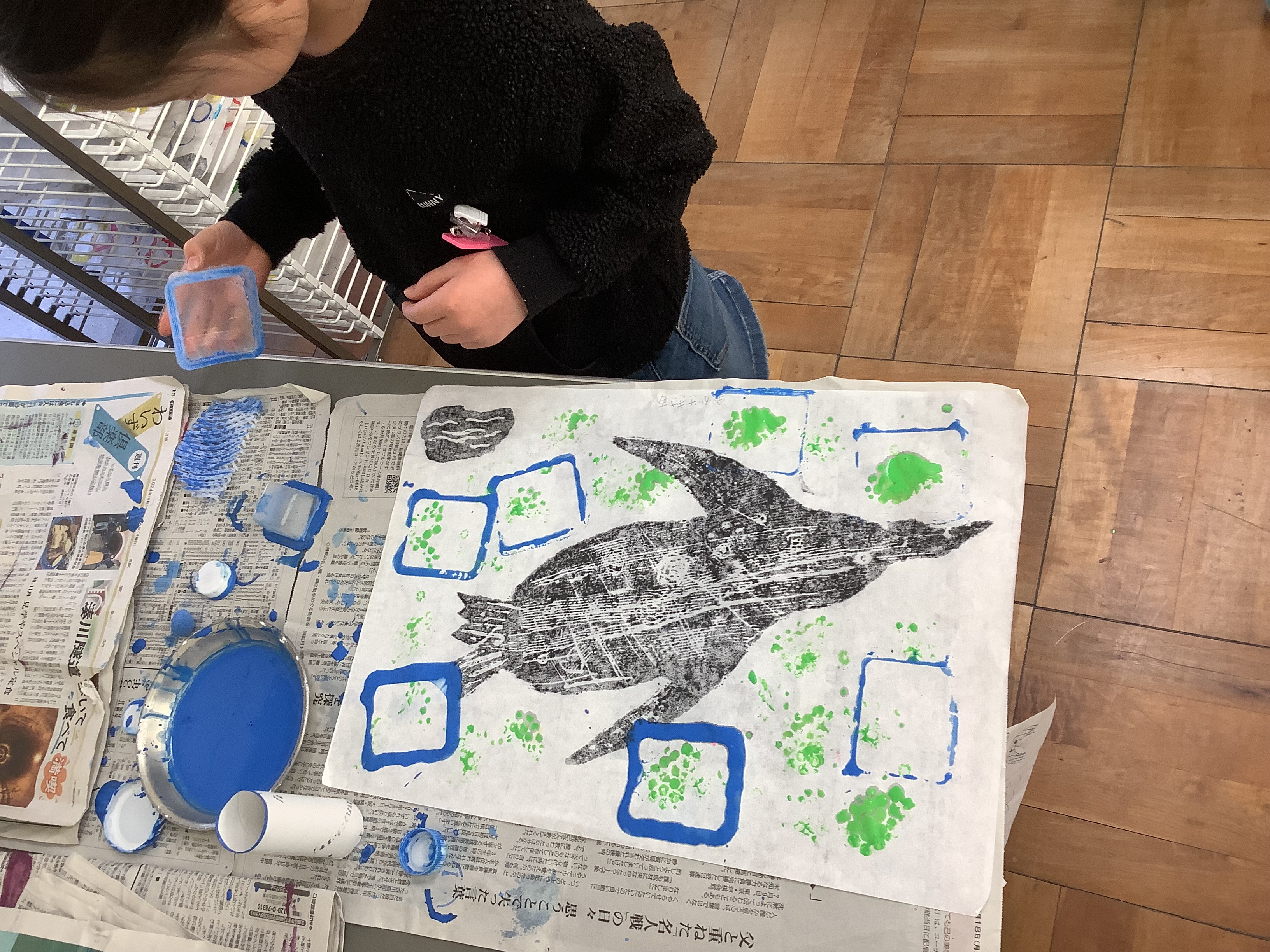 インクをつけて和紙に写すと、どんな風に出来上がるのかをわくわくしながら刷りました。