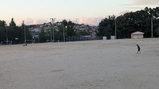 明日は全校練習があります。夕方、運動場を見ると、2人の先生が準備してくれていました。