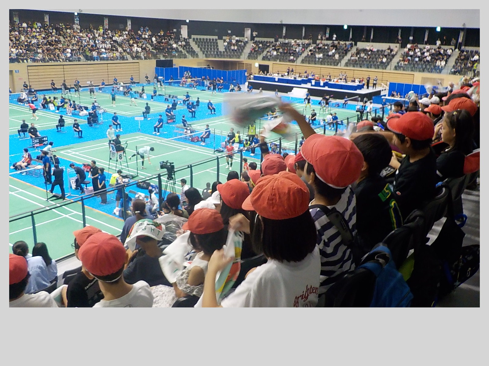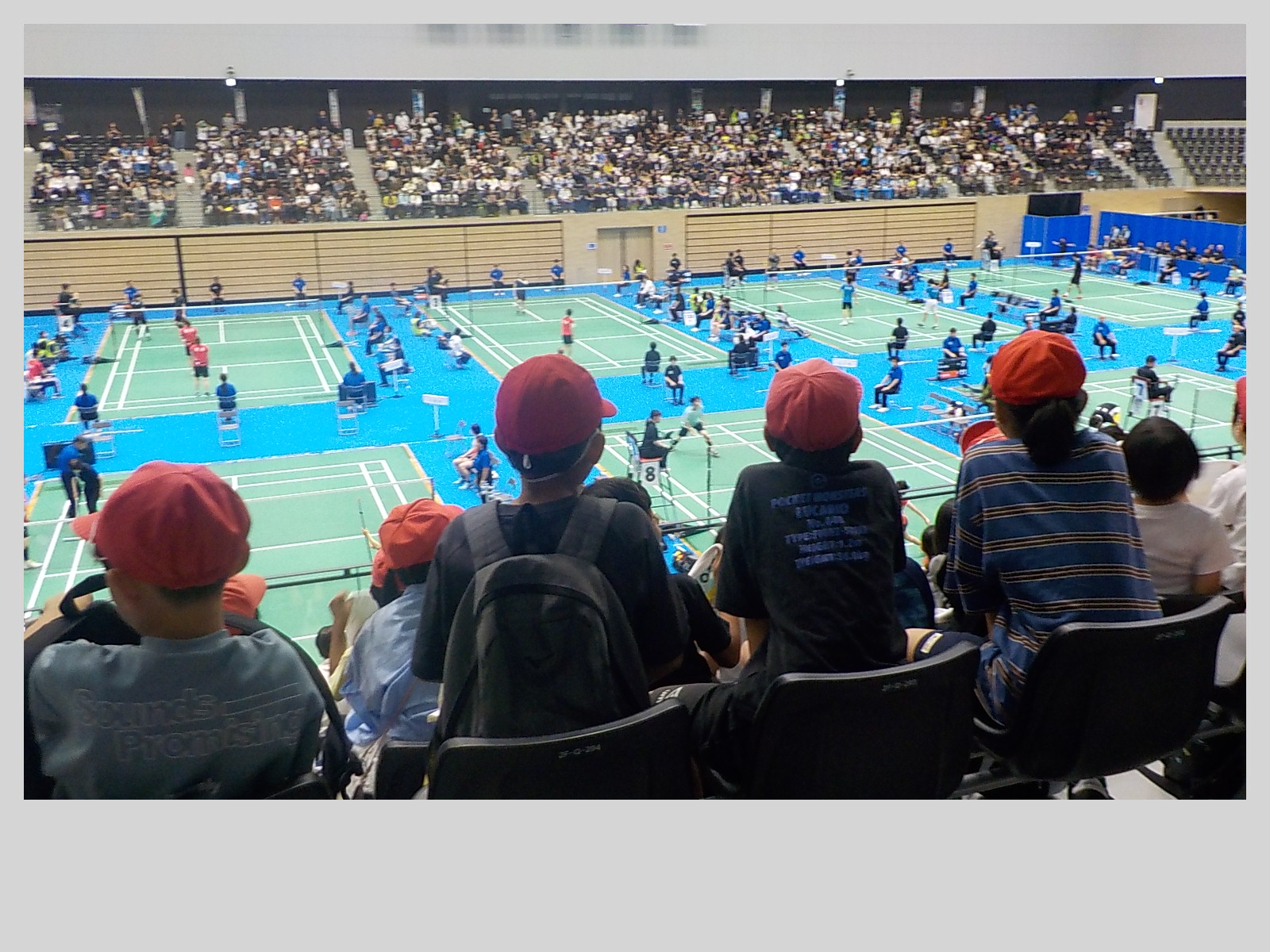 バトミントンの熱い試合を見てきました。「スゲー」「あれは取れへんわ」「がんばれ○○」。